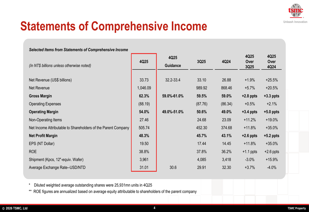 TSMC Q4 2025 slides: Revenue exceeds guidance as advanced nodes drive growth Source link