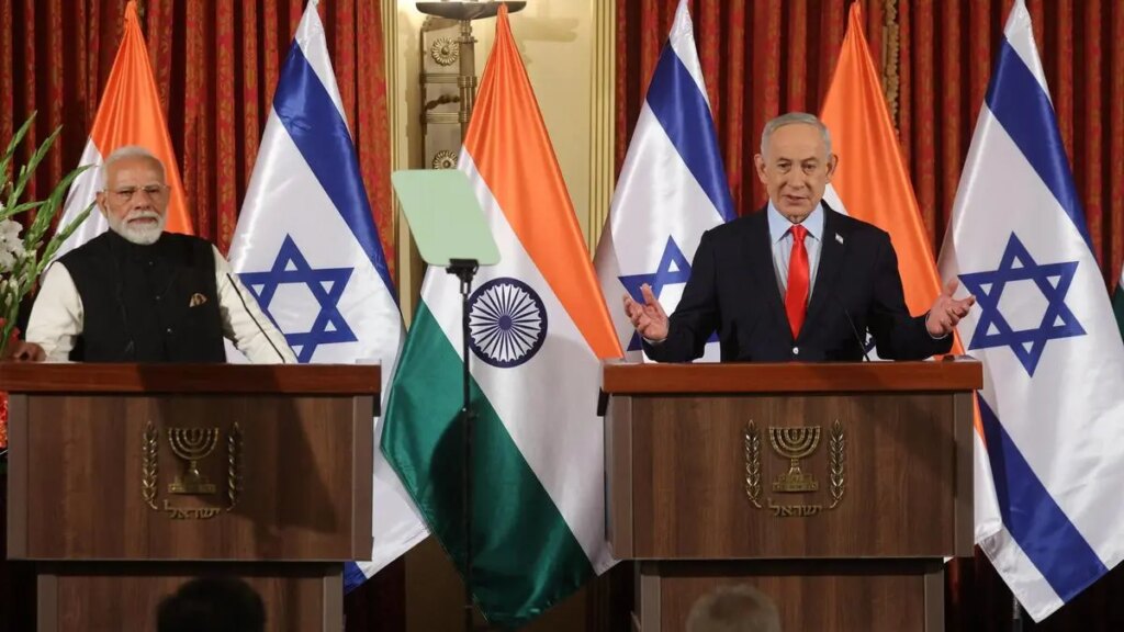 Israel’s Prime Minister Benjamin Netanyahu and India’s Prime Minister Narendra Modi attend a press conference in Jerusalem | Photo Credit: