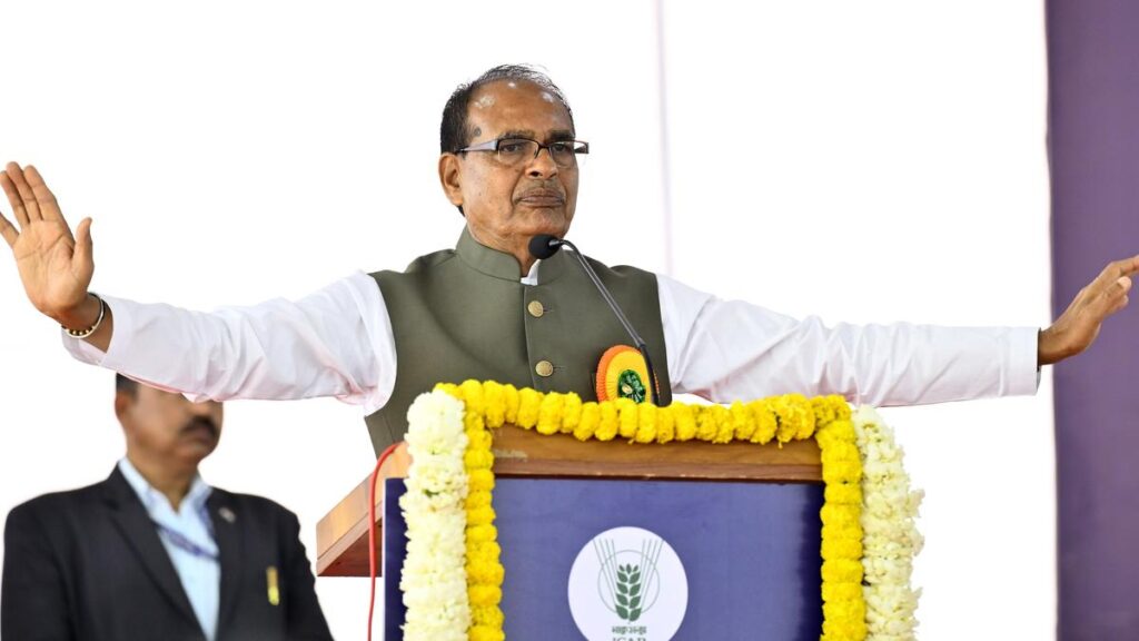 Union Agriculture and Rural Development Minister Shivraj Singh Chouhan addressing to the farmers at the inauguration of Pusa Krishi Vigyan